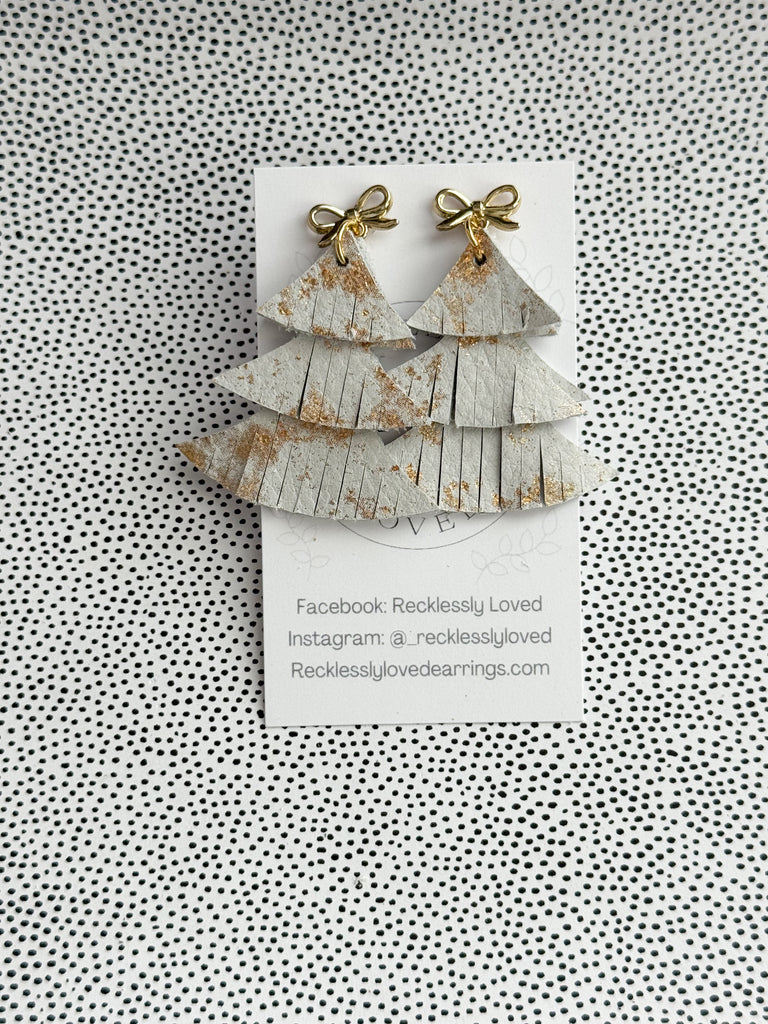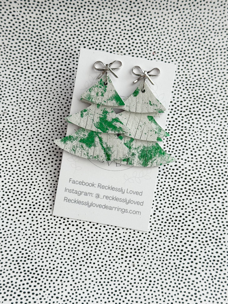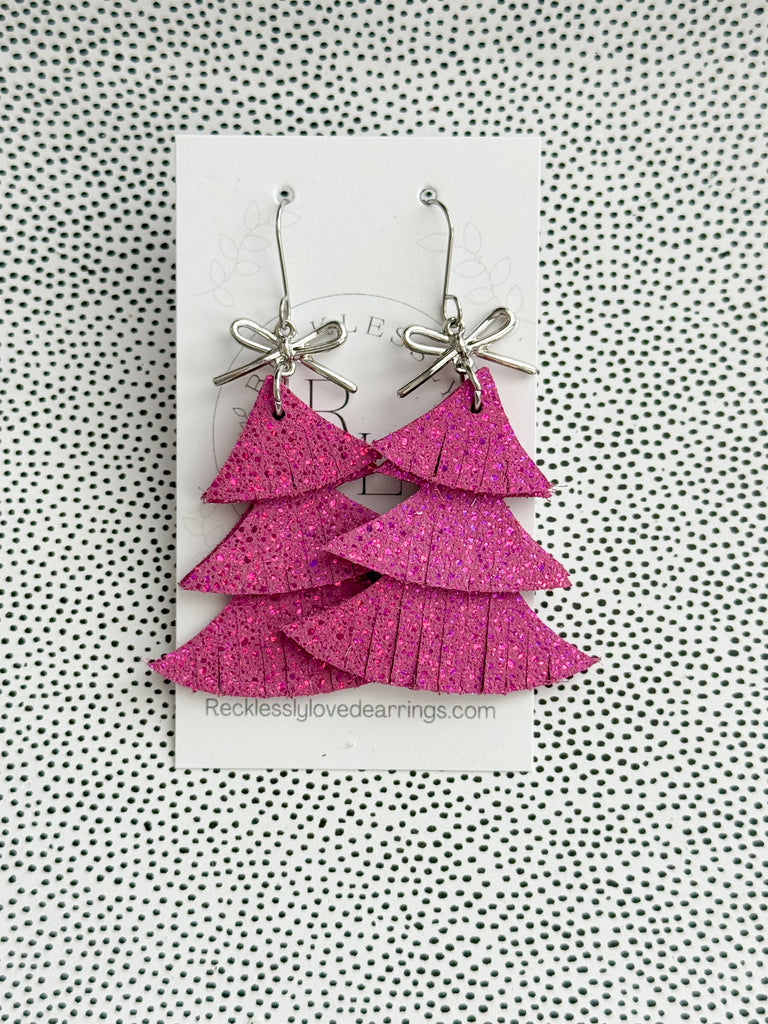 Introducing the newest addition to our holiday collection - The Fringed Christmas Tree. This earring features a unique stacked fringed design. Made with genuine leather and surgical stainless steel hooks. Custom colors are an option as well!
