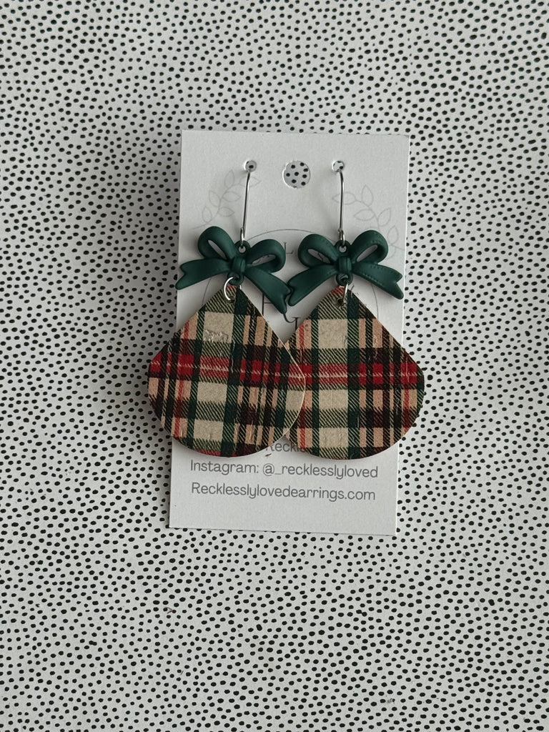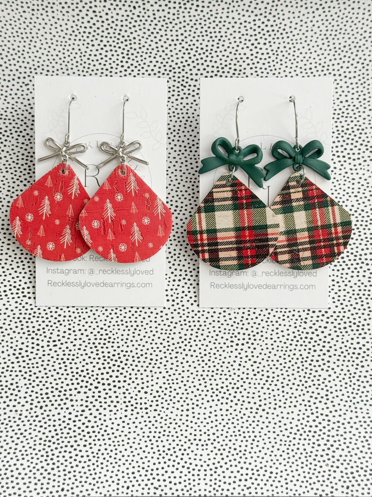 This little shape look like an ornament. Choose from plaid or red trees. Made either surgical stainless steel hooks.